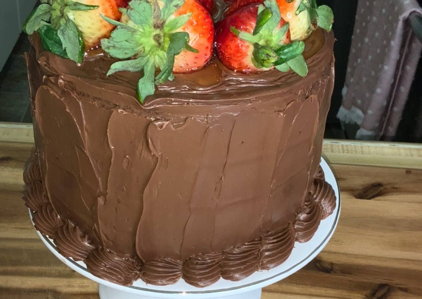 - Bueno le acomodas las fresas a tu gusto. Y listo, lo pones al refrigerador y a esperar el momento de lucir tú el pastel... queda riquísimo. No queda reseco, queda muy humectado y suavecito!!