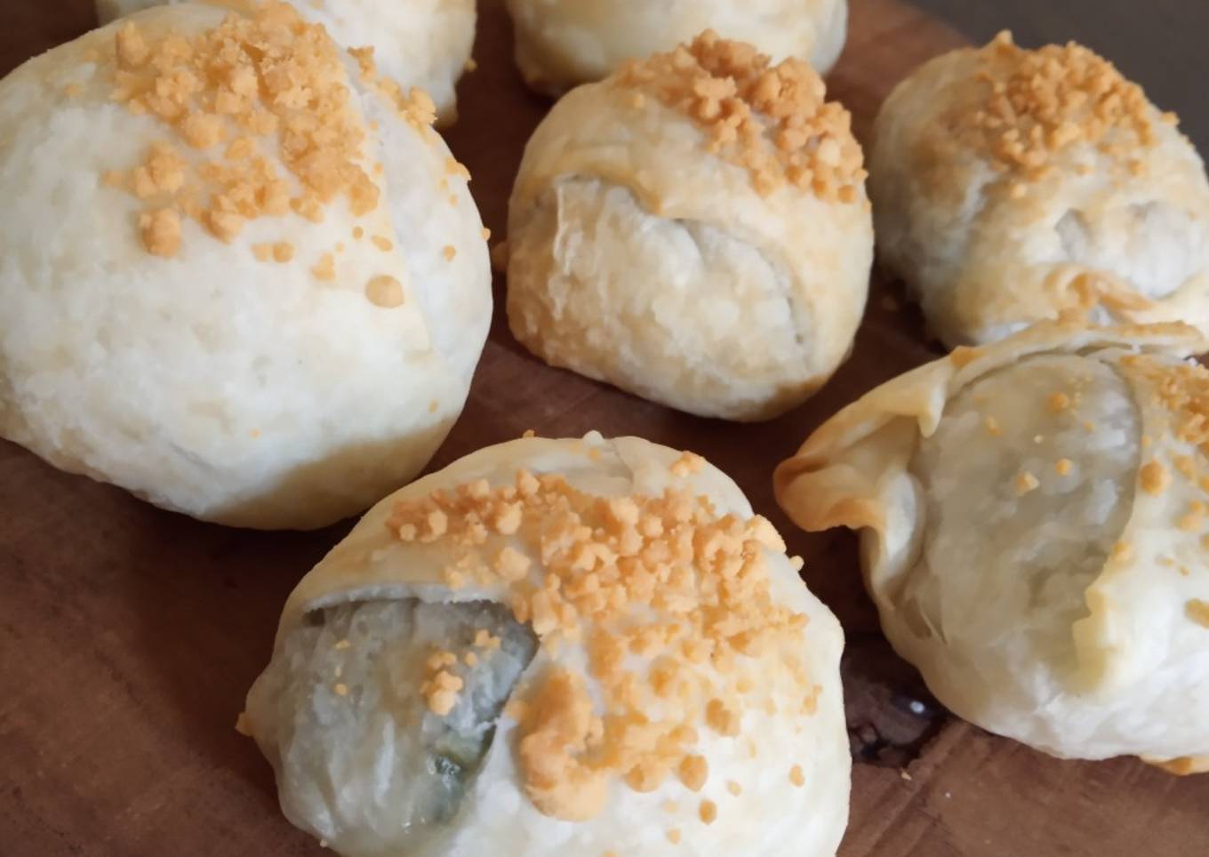 - Ponemos los boios con el cierre hacia abajo en una placa aceitada. Pintamos la superficie con aceite y espolvoreamos queso rallado. Llevamos a horno precalentado fuerte por aprox 20 minutos, hasta que la masa esté cocida y dorada.