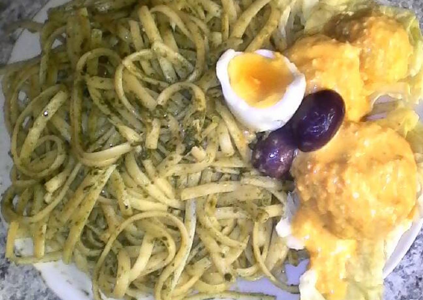 Tallarines verdes con papa ala huancaina-comida peruana