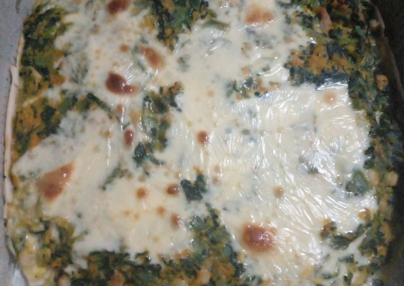 - Mezcle la acelga al relleno y arme la tarta! (Puse una capa de relleno, una de queso, otra de relleno y más queso)