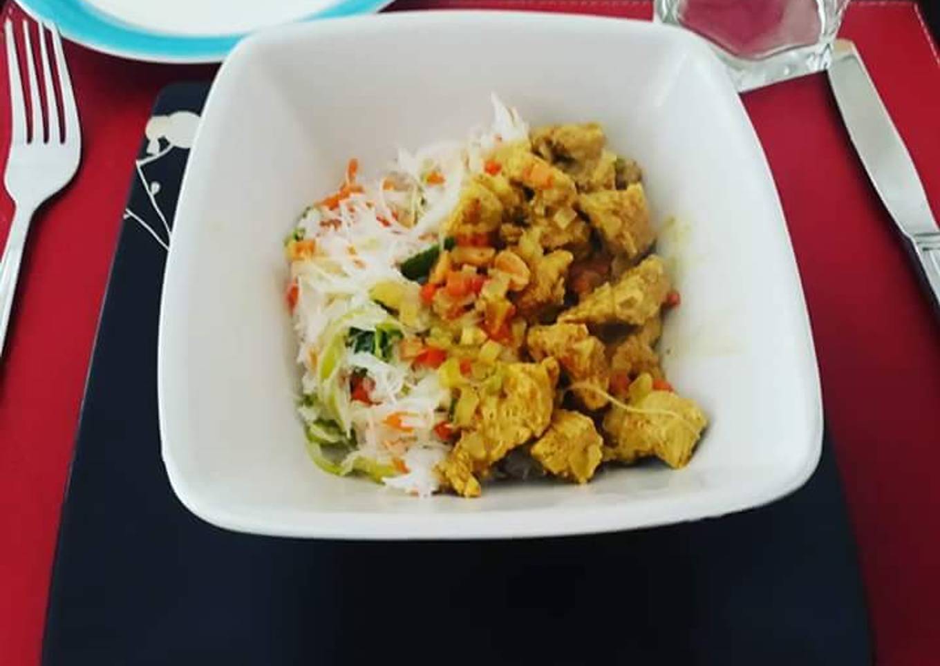Ingredients and spices that need to be Make ready to make Pavo al curry con fideos de arroz (comida thai):