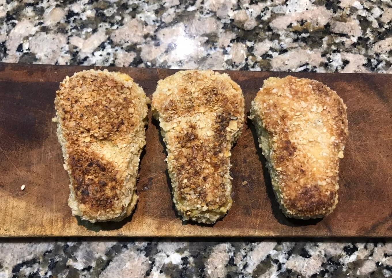 Pasar por los huevos y por la mezcla de avena, pan rallado y semillas.